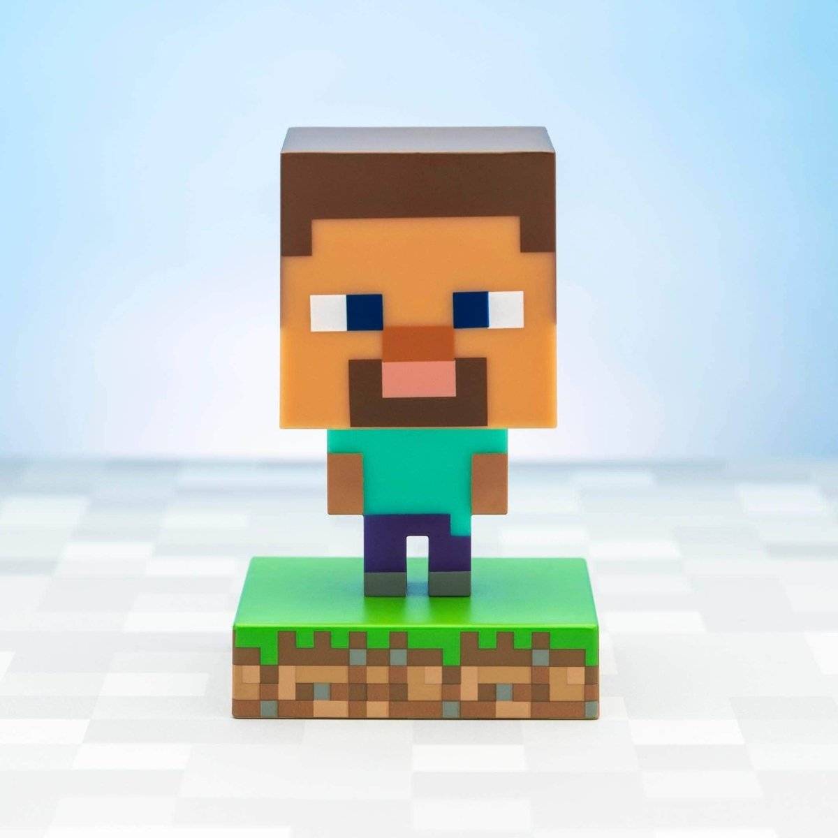Minecraft Steve-lampan använder två AAA-batterier (ingår ej, men kan köpas separat) för att lysa upp ditt rum. Lampan är designad för att se ut som huvudkaraktären Steve från spelet.