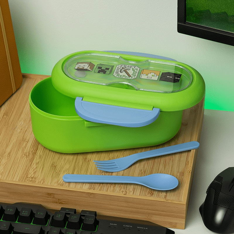 Minecraft-matlåda med bestick gör lunchrasten lite mer spännande och är perfekt för ett Minecraft-fan som älskar praktisk Minecraft-merch i vardagen. Denna matlåda är en smart och rolig presentidé som passar lika bra för skolan, jobbet som på resan, och är ett naturligt tillskott till samlingen av Minecraft-saker.