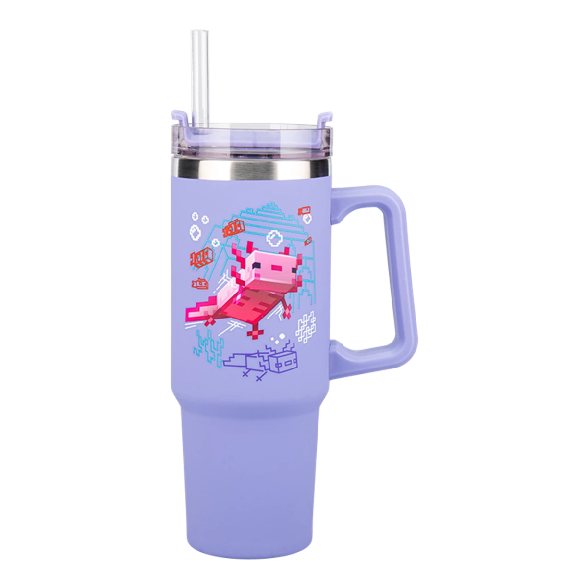 Håll dig hydrerad hela dagen med denna charmiga Minecraft Axolotl- termosflaska med en kapacitet på 900 ml! Den lila, isolerande termosflaskan håller din dryck varm eller kall i många timmar, och med sin unika axolotl-design är den verkligen perfekt för ett Minecraft-fan som vill uttrycka sin spelglädje på ett gulligt och praktiskt sätt.