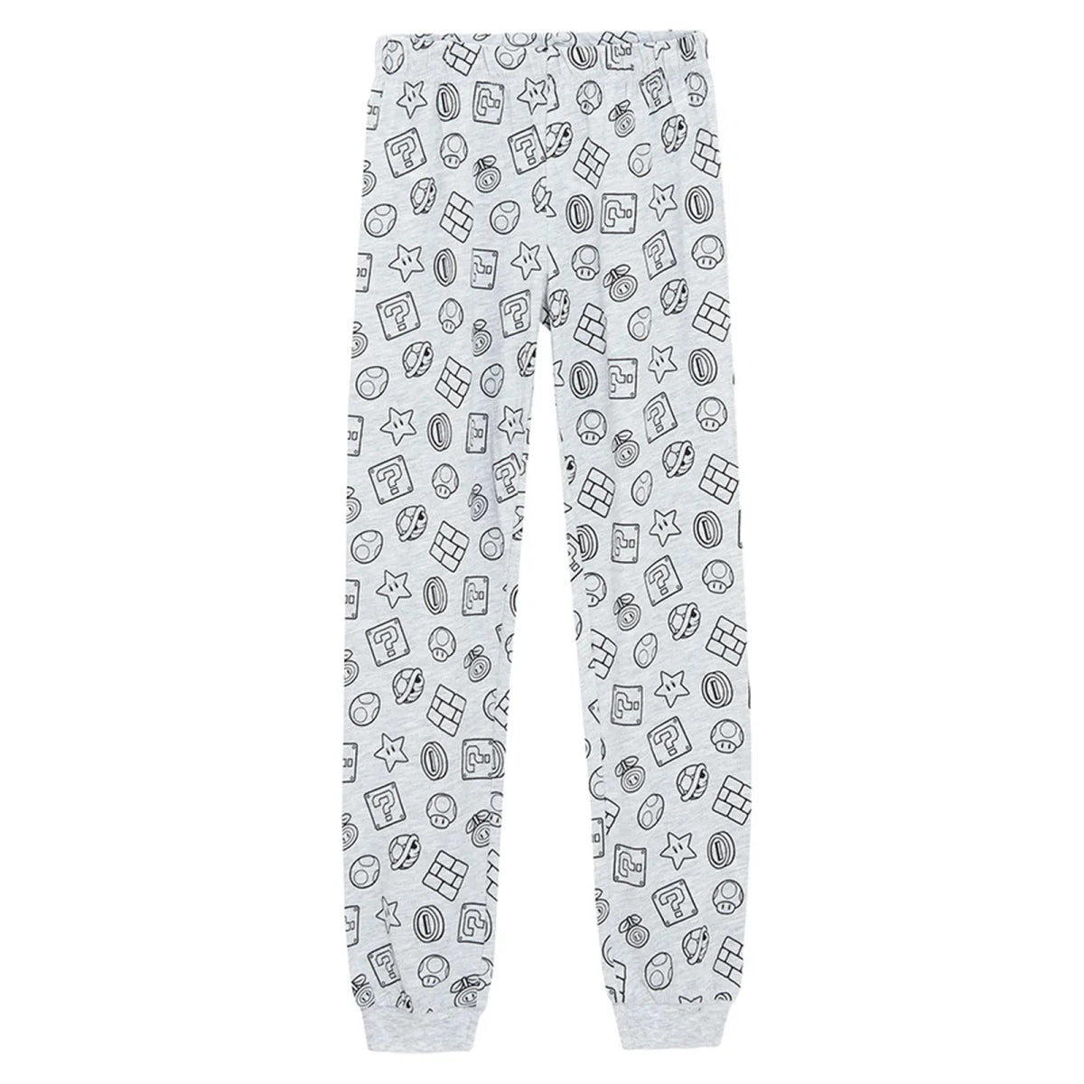 Överdelen är tillverkad av 100 % bomull , medan underdelen är tillverkad av en läcker bomullsblandning. Tillsammans ger dessa en superbekväm upplevelse, så att du kan sova gott. Pyjamasen är grå, vilket gör den både trendig och tidlös. De är dekorerade med tryck av kända Super Mario-ikoner överallt, vilket ger den en rolig och livfull design.